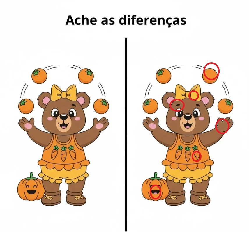 Na hora de conferir, muita gente se surpreende ao perceber que passou por cima de detalhes óbvios — uma laranja a mais, um botão diferente, uma folha invertida. E é isso que torna o desafio tão divertido: testar seu foco em meio a uma explosão de cor e detalhes. Se você encontrou todas as diferenças, parabéns pelo olhar afiado! Se não conseguiu todas, não se preocupe — o importante é se divertir e treinar a percepção visual.